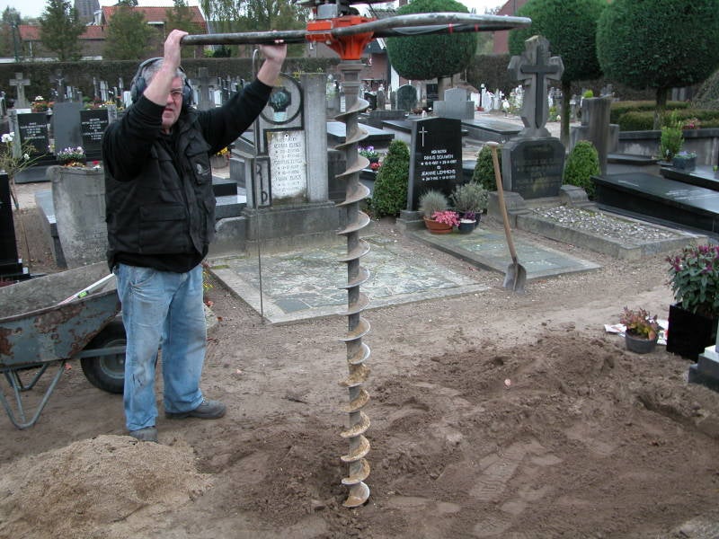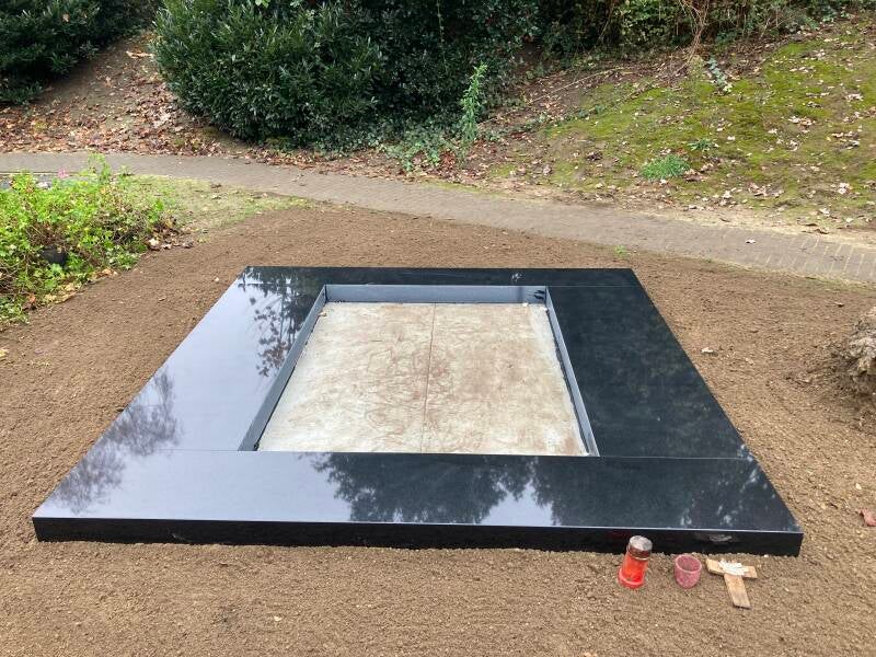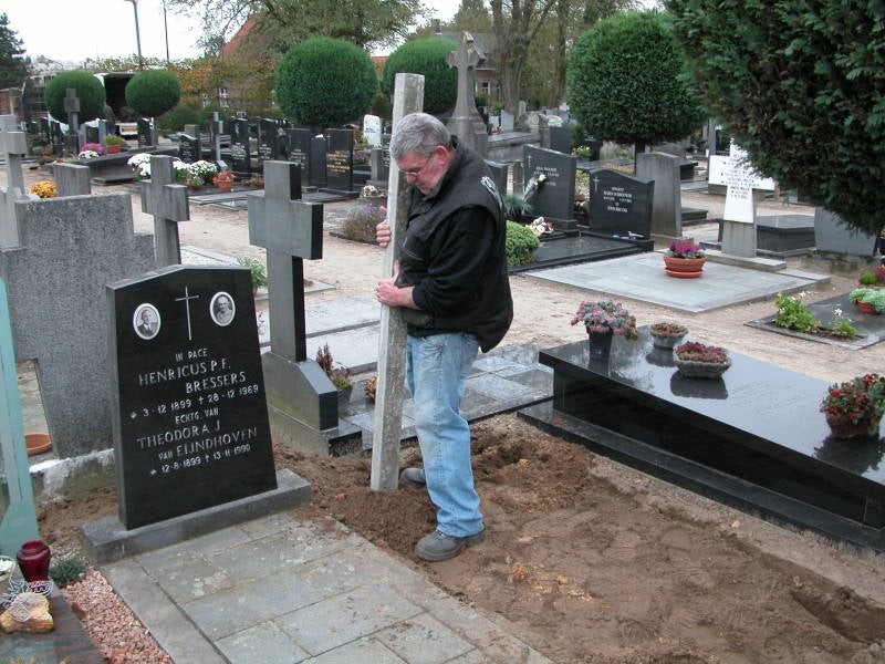 Hier ziet u een aantal foto's van het plaatsen van een grafmonument.