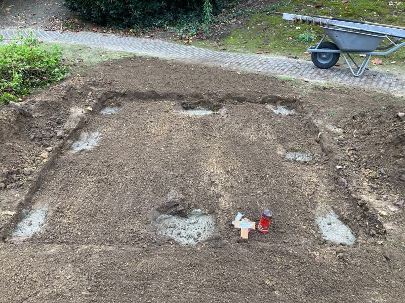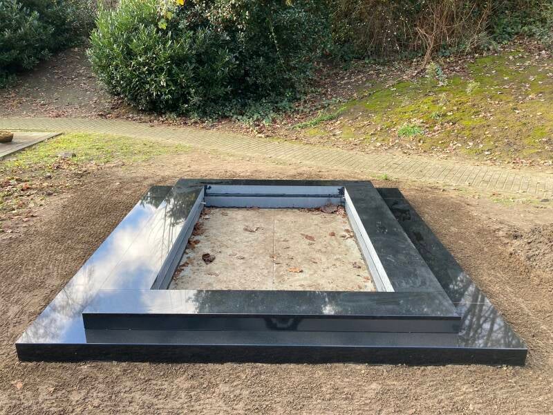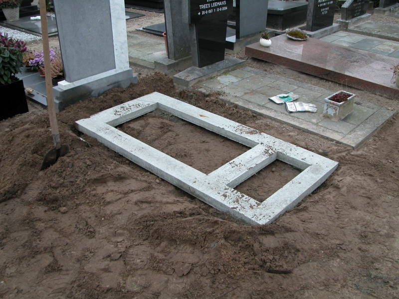 ( Het gebruik van funderingspalen van beton is erg belangrijk, in onze branche worden vaak kunststof palen gebruikt, dit is niet alleen slecht voor het milieu maar ook niet stevig genoeg voor een zwaar grafmonument )